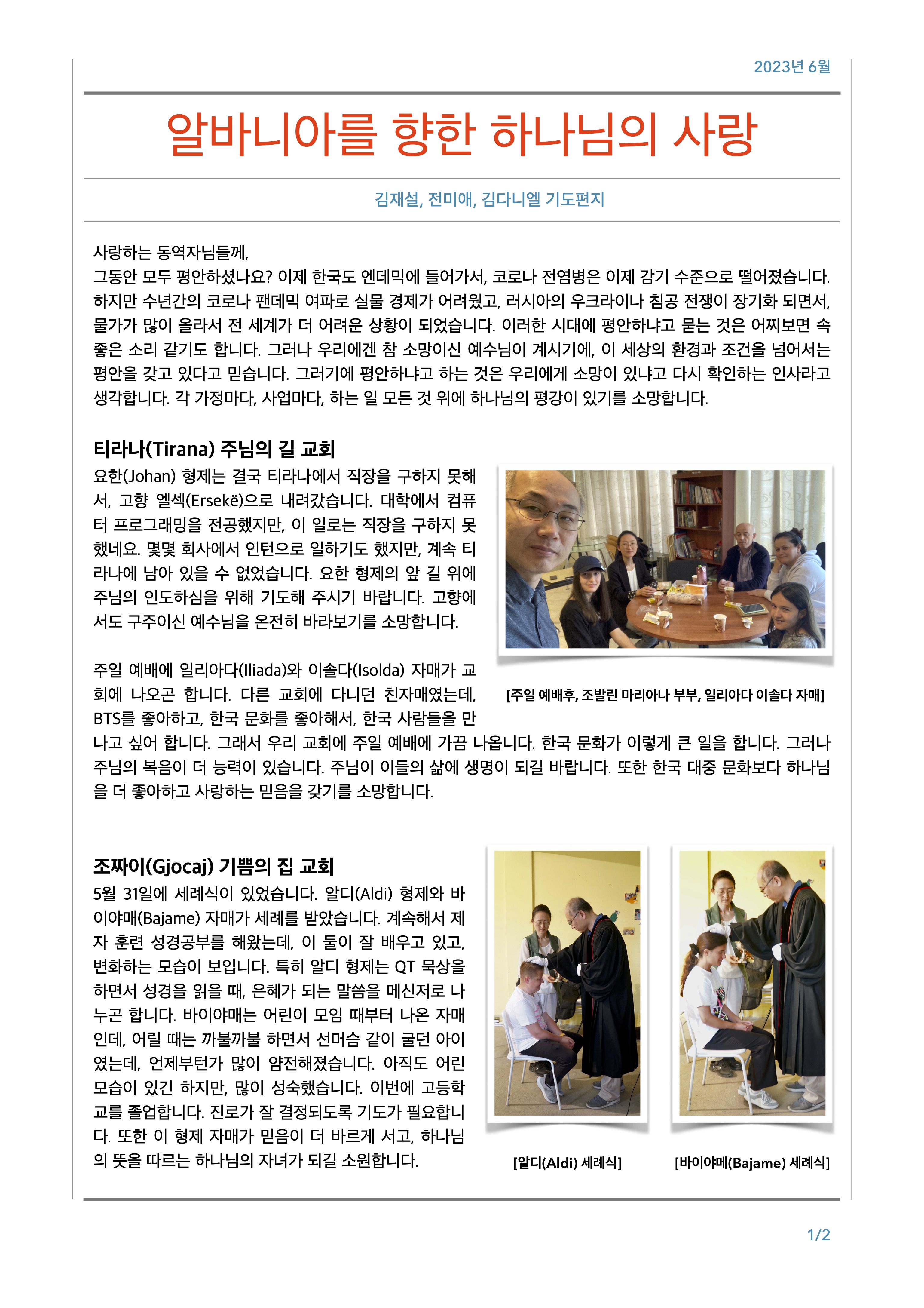 기도...함께 2023년 6월 기도편지 알바니아 사랑 2023. 6. 28. 15:14 이제까지 기도편지를 쓴 것을 자주 여기 올리지 않았습니다. 지금부터라도 잘 올려야겠어요. 공유하기 게시글 관리 알바니아를 향한 하나님의 사랑 '기도...함께' Related Articles 2024년 1월 기도편지 2023년 10월 기도편지 2016년 5월 소식 2015년 7월 기도편지